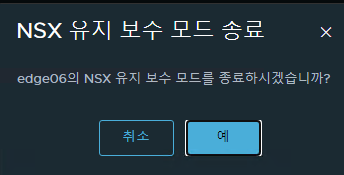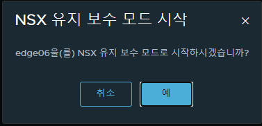 NSX 유지보수 모드 시작을 누르면 Edge는 M/M mode로 진입합니다.