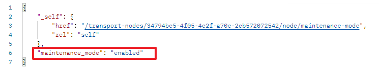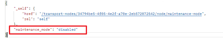 'GET https://nsxmgr/api/v1/transport-nodes/transport-node_id/node/maintenance-mode' 를 입력하여 결과 값을 확인합니다.